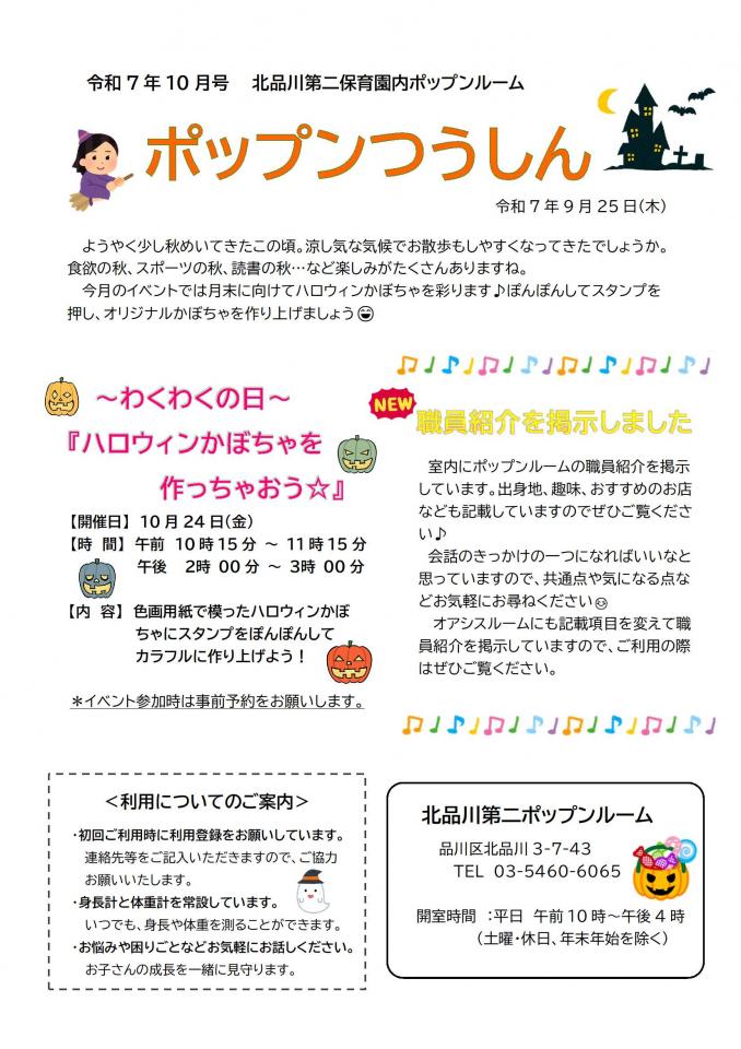 北品川第二保育園内ポップンルーム10月号