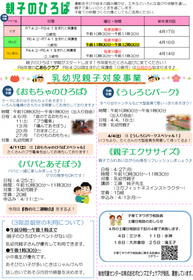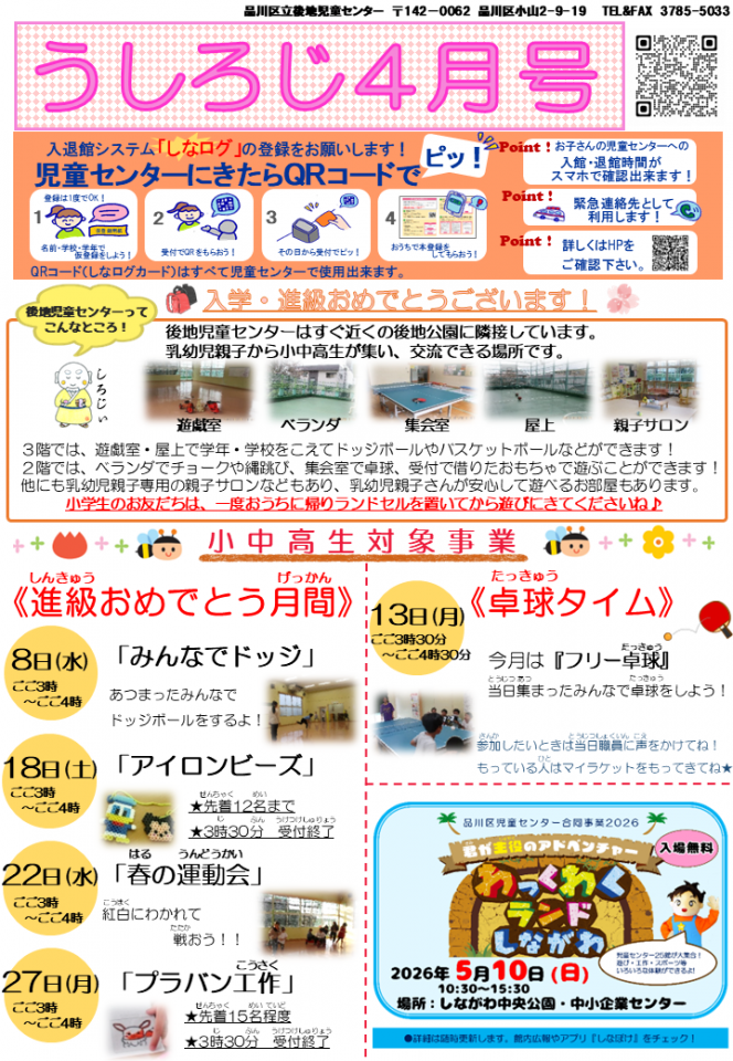 後地児童センターお知らせ 4月号