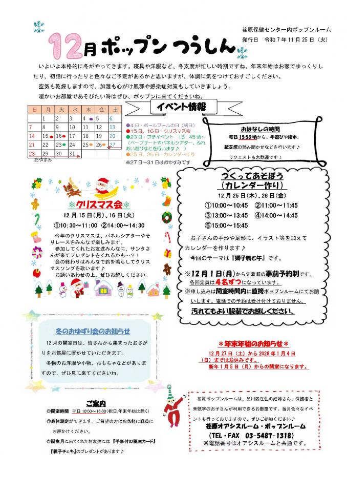 荏原保健センター内ポップンルーム12月号