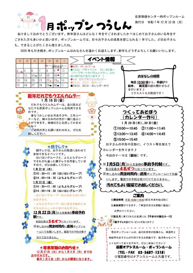 荏原保健センター内ポップンルーム1月号