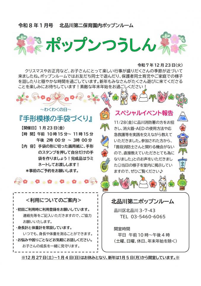 北品川第二保育園内ポップンルーム1月号