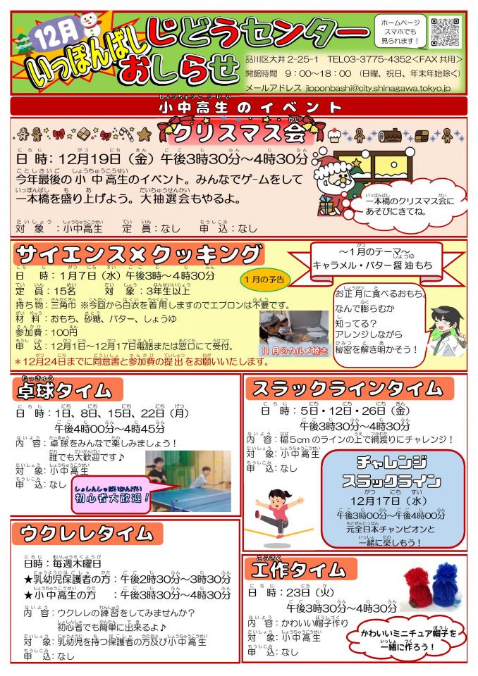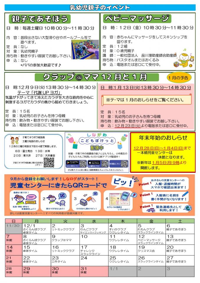 一本橋児童センターお知らせ 12月号