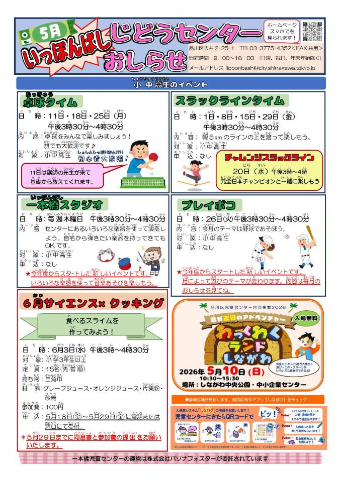 一本橋児童センターお知らせ 5月号