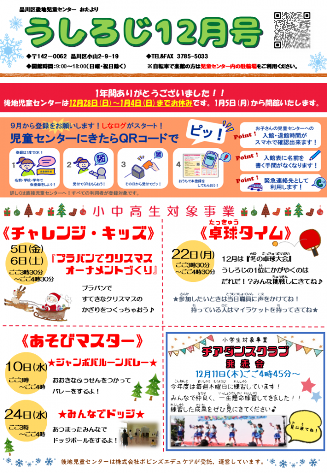 後地児童センターお知らせ 12月号