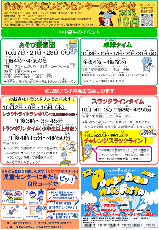 大井倉田児童センターお知らせ 10月号