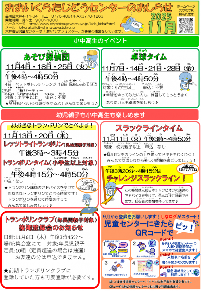 大井倉田児童センターお知らせ 11月号