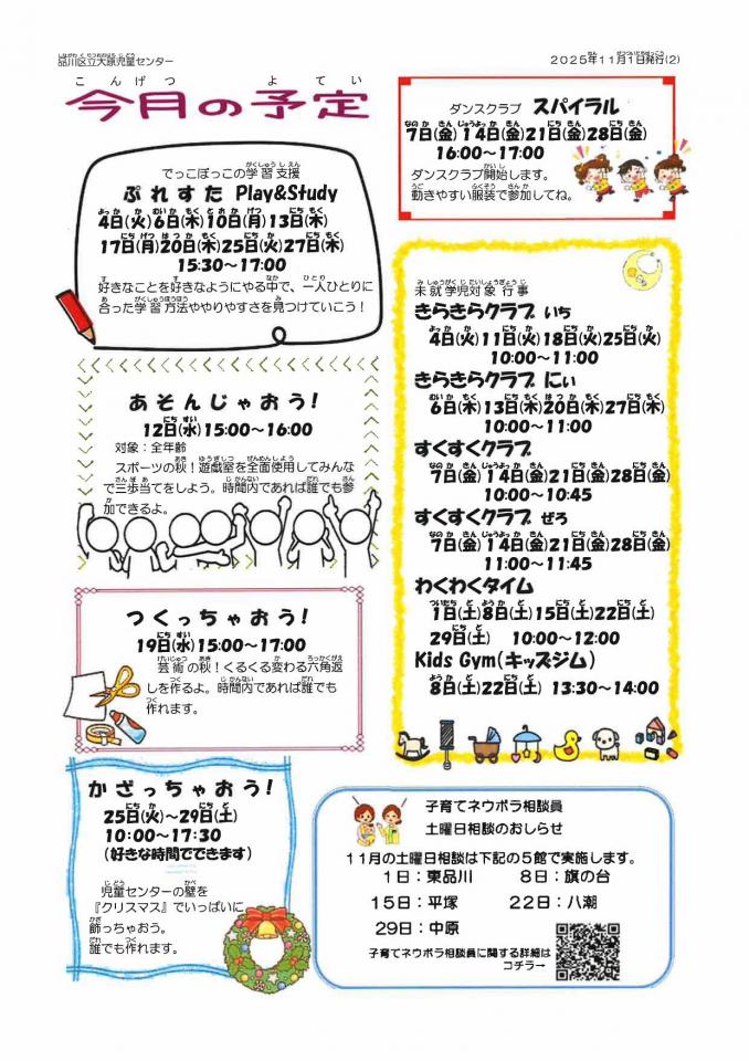 大原児童センターのお知らせ 11月号