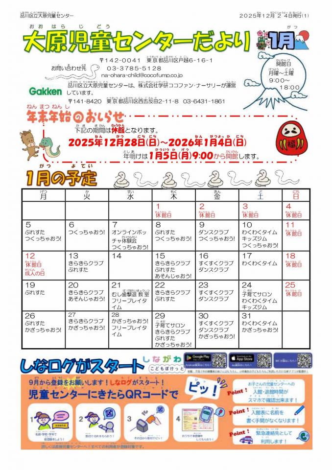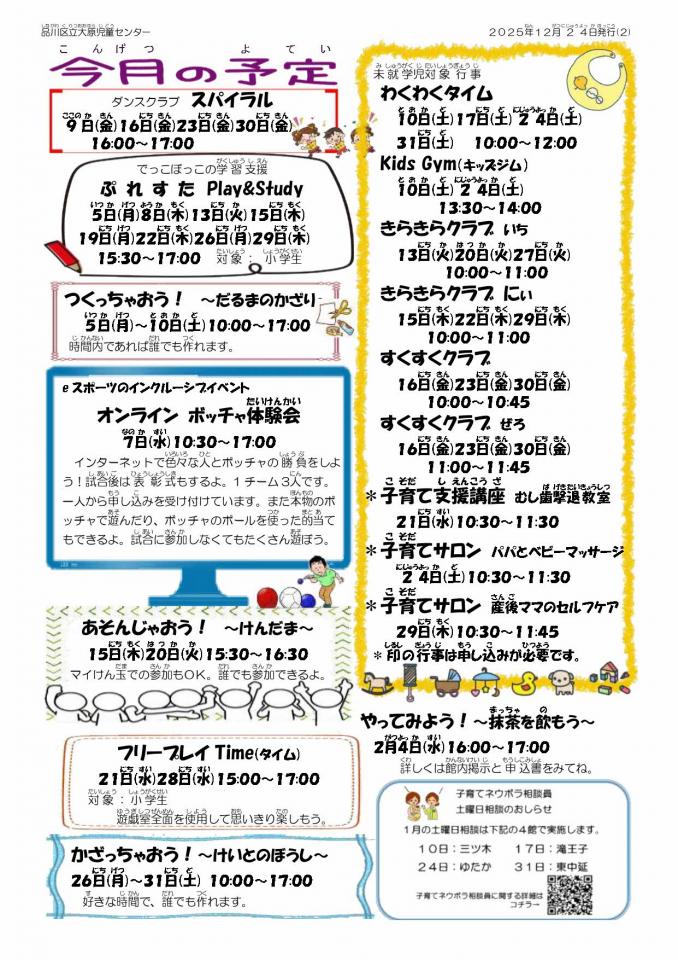大原児童センターのお知らせ 1月号