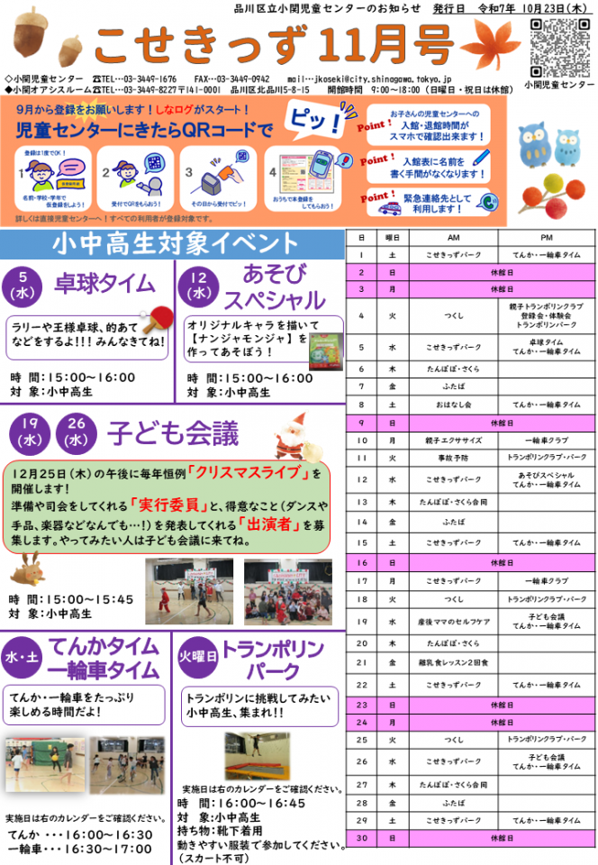 小関児童センターお知らせ11月号