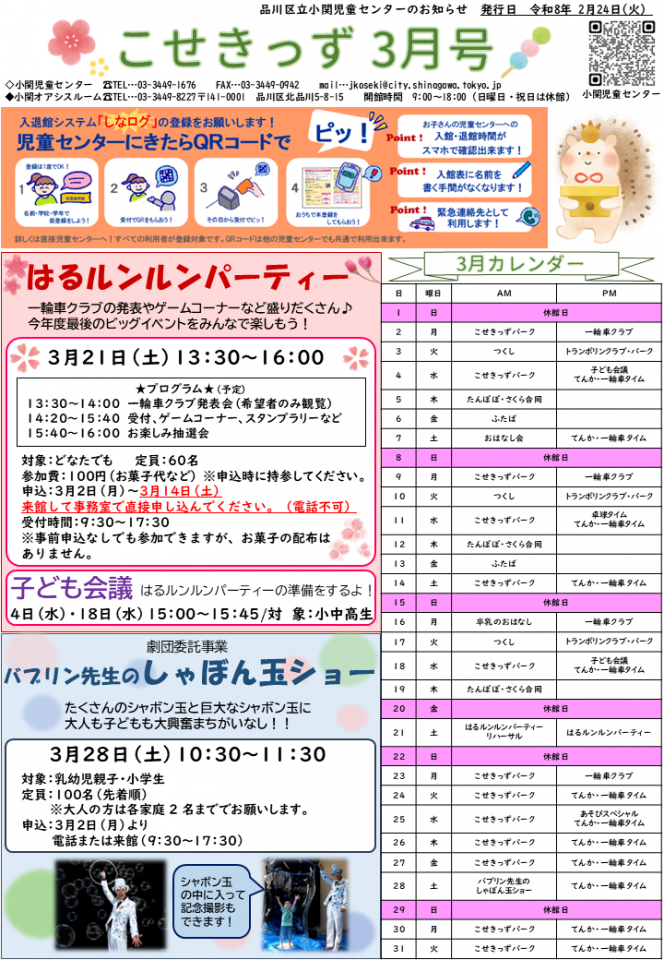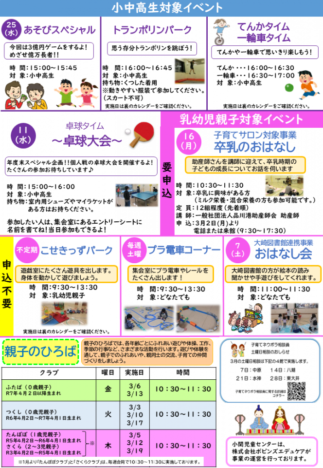 小関児童センターお知らせ 3月号