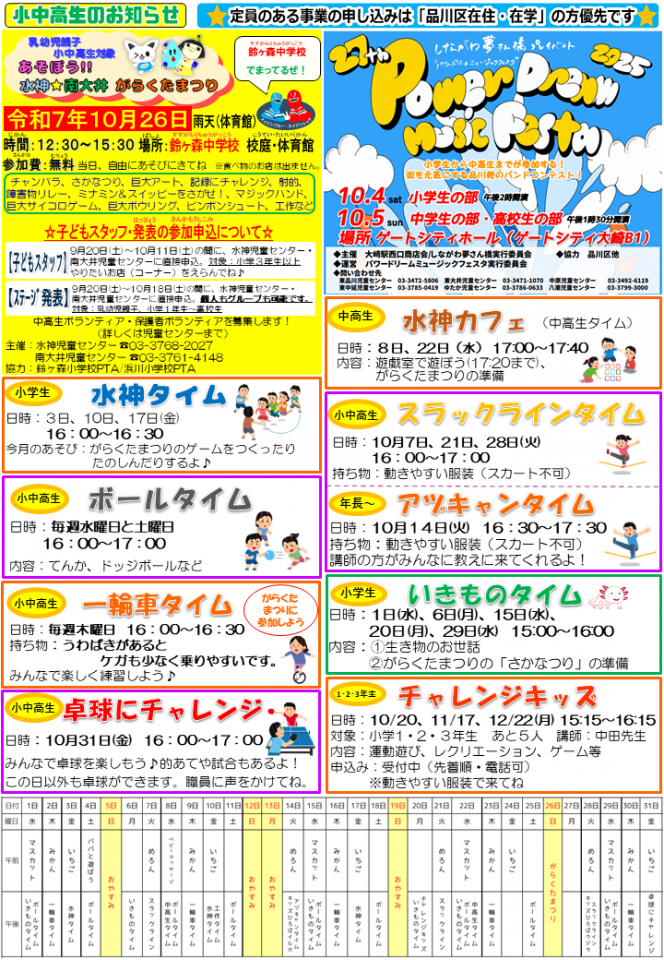 水神児童センターお知らせ 10月号