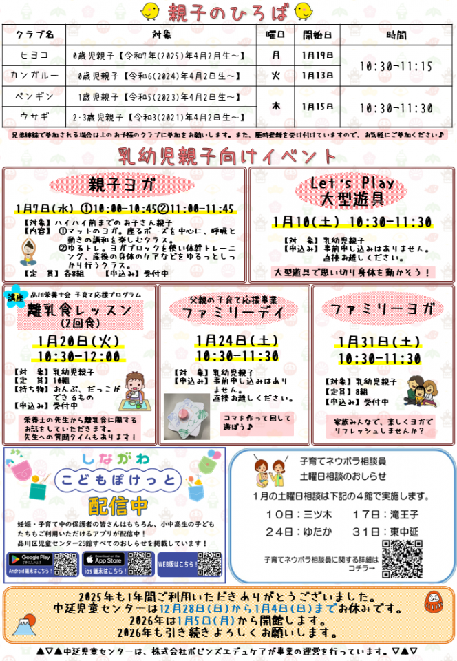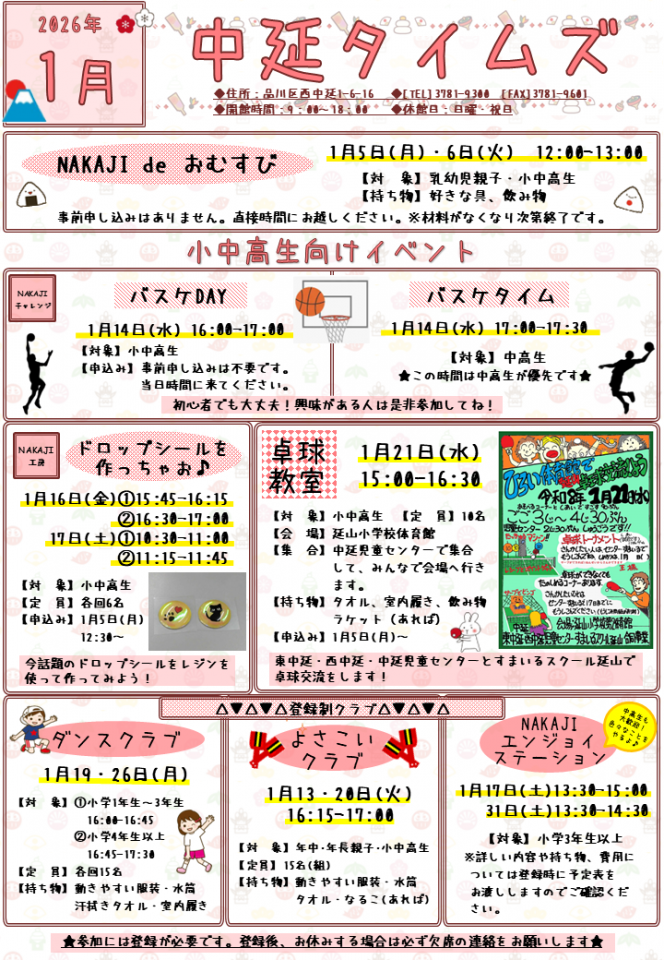 中延児童センターお知らせ 1月号