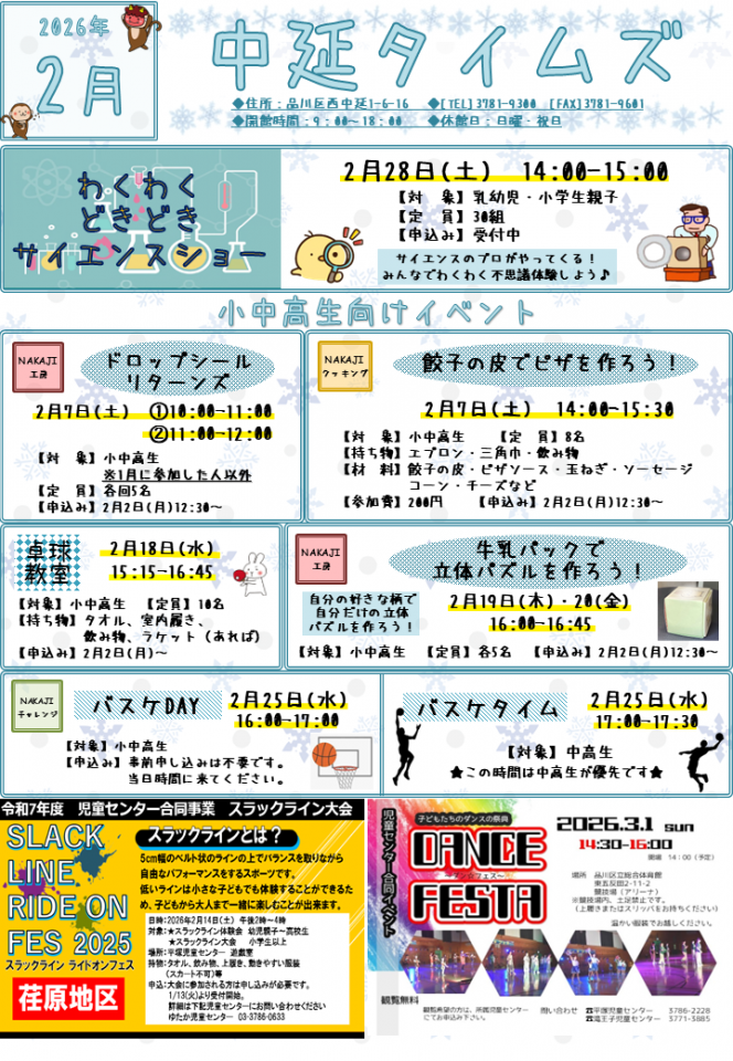 中延児童センターお知らせ 2月号
