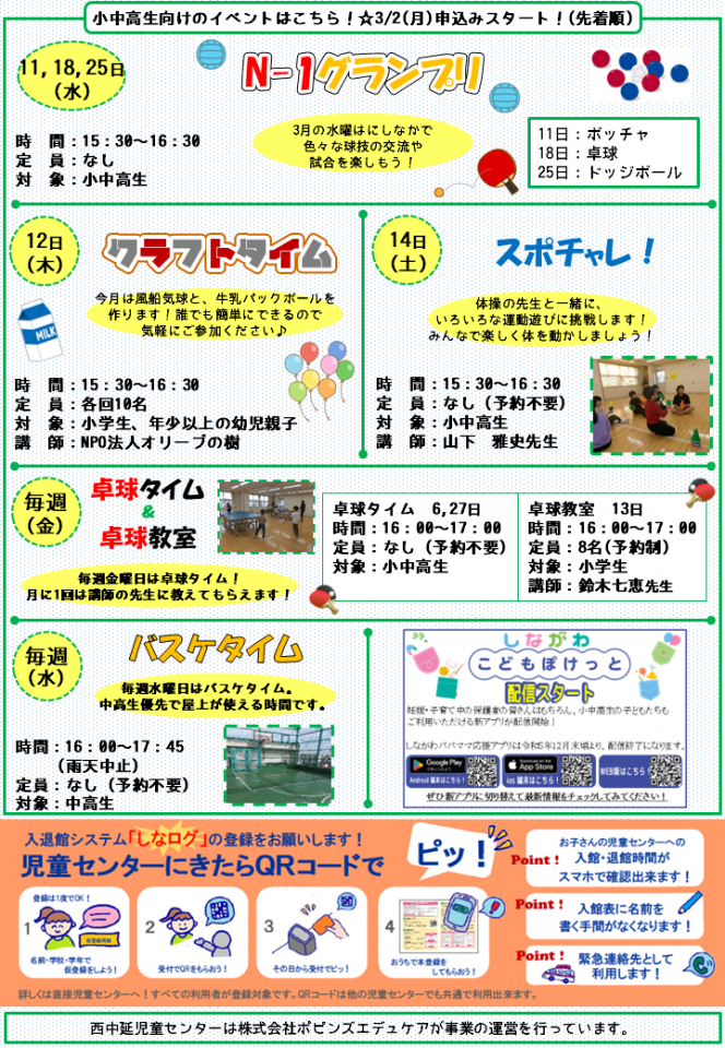 西中延児童センターお知らせ 3月号