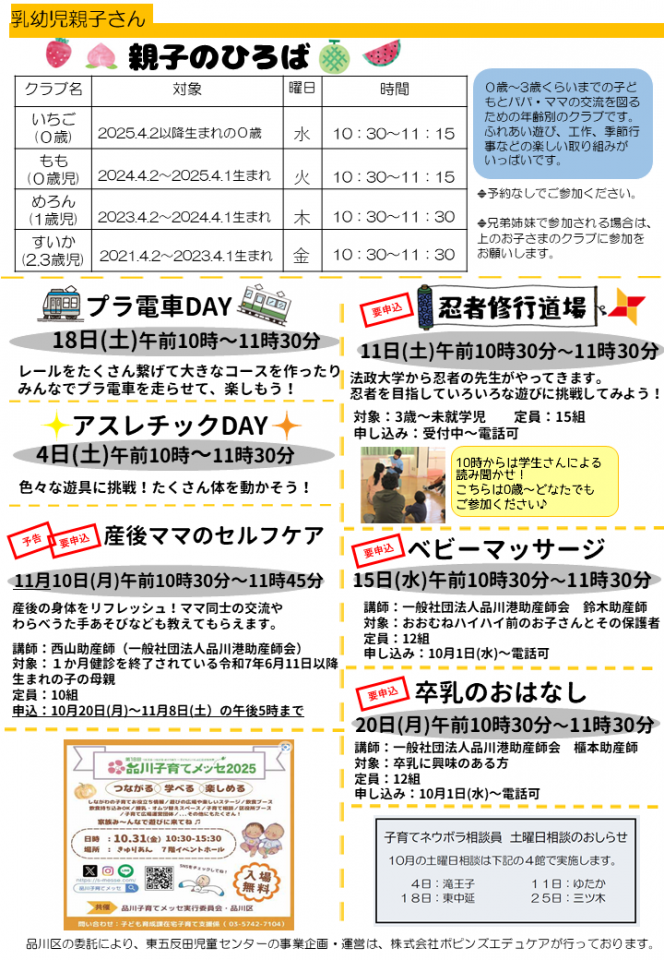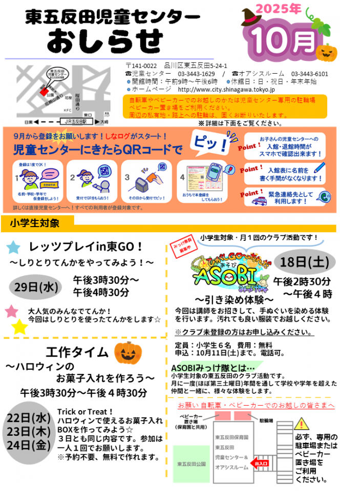 東五反田児童センターお知らせ 10月号