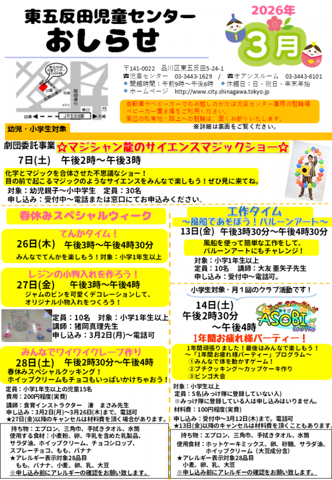 東五反田児童センターお知らせ 3月号