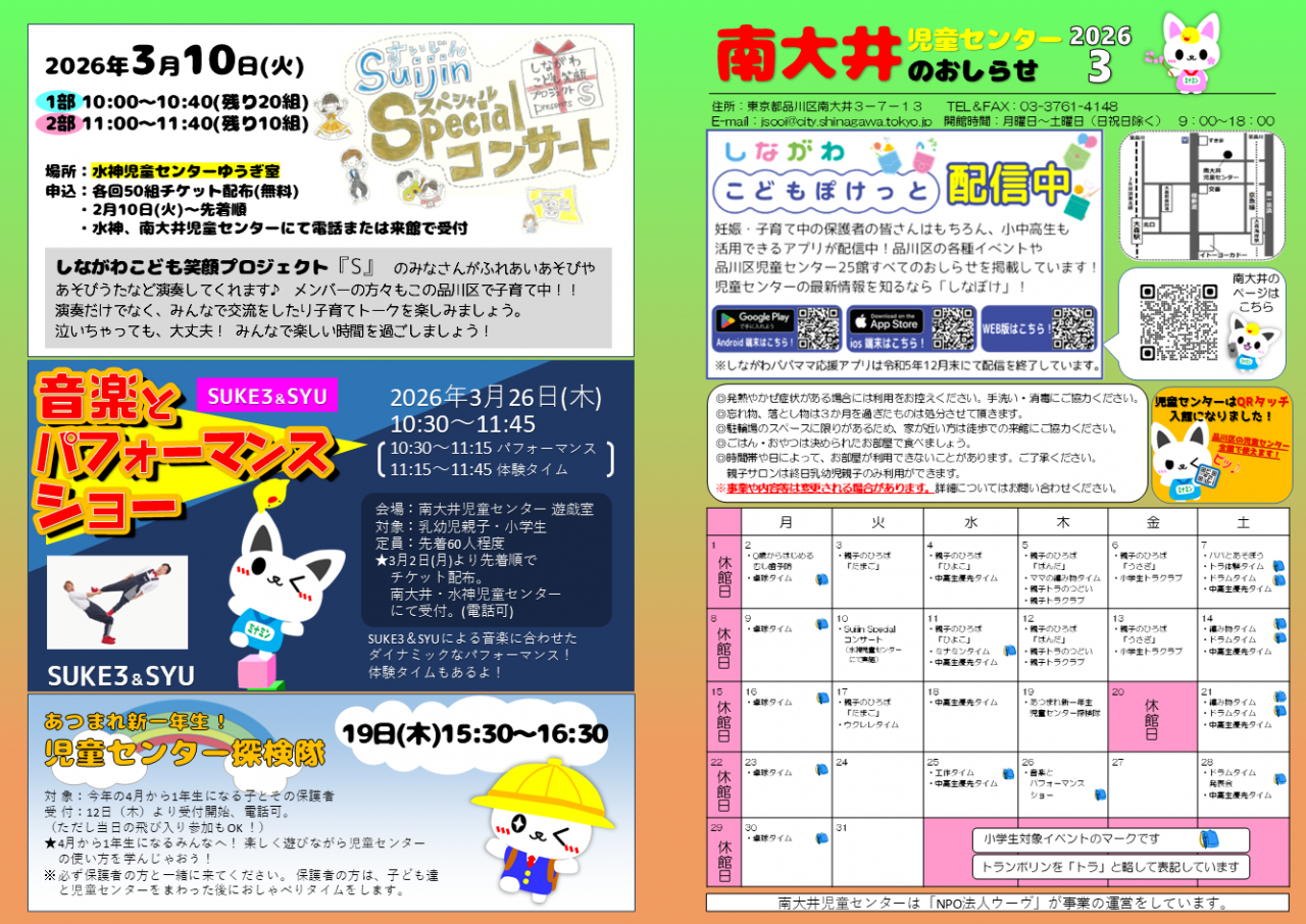 南大井児童センターお知らせ 3月号