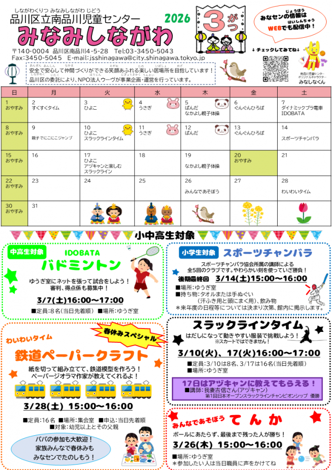 南品川児童センターお知らせ 3月号