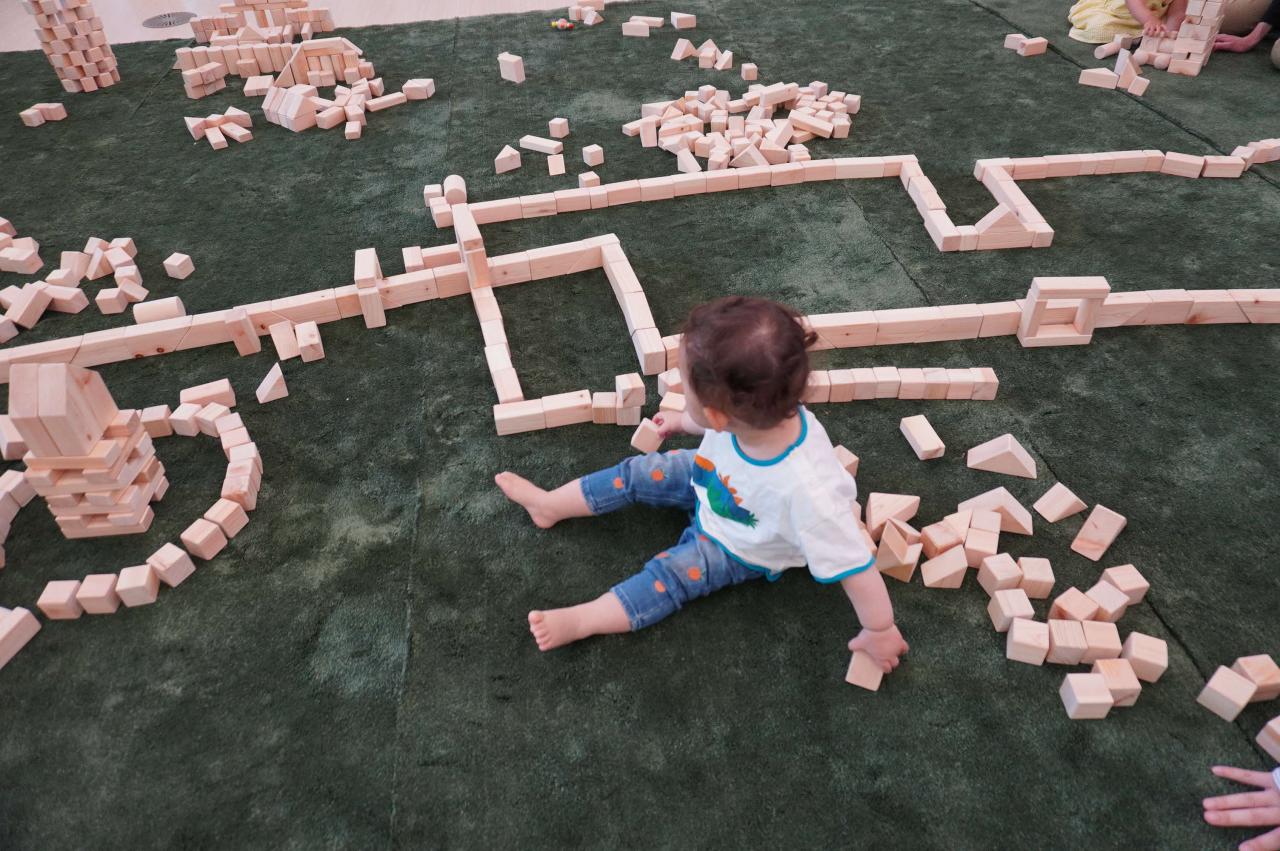 不定期にキッズスペースで開催している「おやこエコ*木育の日」。いつもより広い空間で、やさしい手触りの木のおもちゃで遊ぼう!
